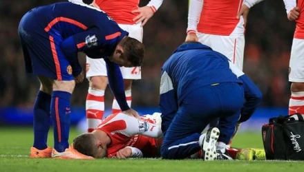 Ο Άγγλος Διεθνής μέσος των «κανονιέρηδων» τραυματίστηκε από τάκλιν που του έκανε ο αμυντικός της Μάντσεστερ Γιουνάιτεντ, Πάντι ΜακΝάιρ, στον αγώνα των δυο ομάδων στο «Έμιρεϊτς» το προηγούμενο Σάββατο (22/11).