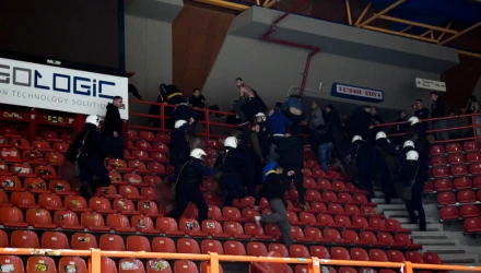Κατά τη διαδικασία εκκένωσης, οι Αστυνομικοί δέχθηκαν αντίσταση και επιθέσεις από τους οπαδούς. Αποτέλεσμα ήταν να τραυματιστούν δύο (2) Συνάδελφοί μας, με τον έναν να τραυματίζεται σοβαρά, καθώς από τη δολοφονική επίθεση που δέχθηκε, έπεσε από την κερκίδα όπου βρισκόταν.
