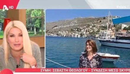 Η καλεσμένη της, η Σεβαστή Θεολόγου ήταν στο λιμάνι του νησιού και μιλούσε μέσω skype…