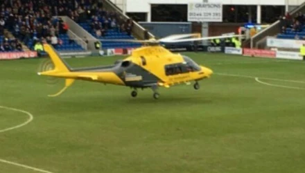Στο 30' το παιχνίδι διεκόπη, οι ποδοσφαιριστές αποσύρθηκαν στα αποδυτήρια κι έτσι το γήπεδο από αγωνιστικός χώρος μετατράπηκε σε ελικοδρόμιο. Η Τσέστερφιλντ, καθώς ο ασθενής είναι φίλαθλος της τοποθετήθηκε μέσω social media και του ευχήθηκε ταχεία ανάρρωση.