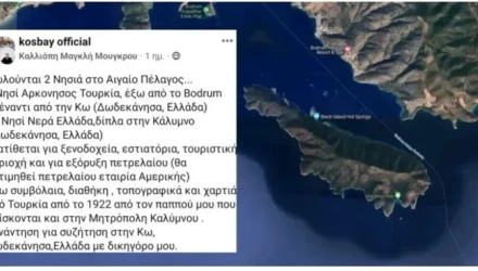 Η φερόμενη ως κληρονόμος των δύο νησίδων αναφέρει πως «πουλάει» την τουρκική Αρκόνησο και την ελληνική νησίδα Νερά νότια της Καλύμνου για τουριστική αξιοποίηση και… «εξόρυξη πετρελαίου».