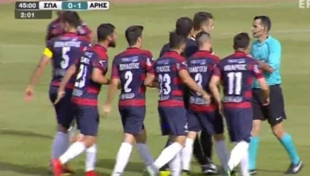 Ένταση και διακοπή από το πουθενά στο παιχνίδι της Σπάρτης με τον Άρη! Ο διαιτητής της αναμέτρησης έδωσε πέναλτι στην ομάδα της Θεσσαλονίκης και ο Διαμαντόπουλος έστειλε την μπάλα στα δίχτυα κάνοντας το 0-1.. και μετά έγινε το έλα να δεις!