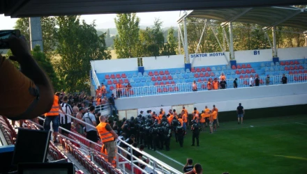 Πριν από λίγο υπήρξε ένταση εντός του γηπέδου του αγώνα μεταξύ των λιγοστών-μέχρι εκείνη τη στιγμή-οπαδών του ΠΑΟΚ και των οπαδών της Σλοβάκικης ομάδας.