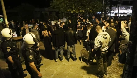 Οι συγκεντρωμένοι, φωνάζουν συνθήματα κατά των αστυνομικών, που τους ζητούν να απομακρυνθούν από το σημείο.