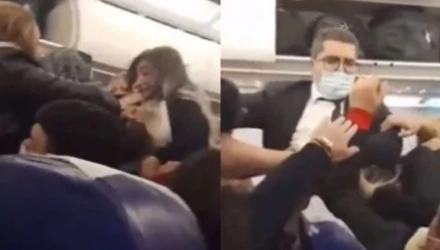 Ο άνδρας την αφήνει από τα χέρια του όταν ένας από τους φροντιστές μπαίνει κυριολεκτικά στη μέση και το βίντεο τελειώνει με τους επιβάτες όρθιους στο διάδρομο να ουρλιάζουν ο ένας στον άλλον. Σύμφωνα με εκπρόσωπο της αεροπορικής εταιρείας, η πτήση καθυστέρησε πέντε ώρες εξαιτίας του απίστευτου καυγά ενώ γίνεται έρευνα για το περιστατικό.