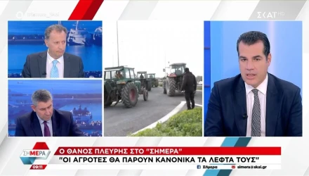 Ο υπουργός Μετανάστευσης και Ασύλου, Θάνος Πλεύρης, φιλοξενήθηκε σήμερα (1/12) στον ΣΚΑΪ και, μεταξύ άλλων, μίλησε για τις κινητοποιήσεις των αγροτών και τα επεισόδια με τις δυνάμεις των ΜΑΤ έξω από τον Πλατύκαμπο στη Θεσσαλία.
