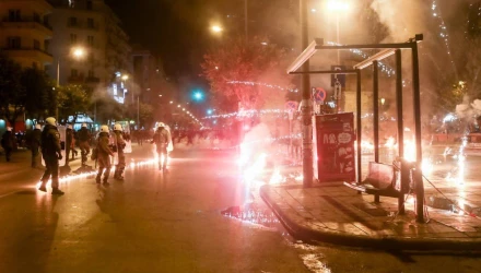 Στη Θεσσαλονίκη, μετά την πορεία, αναρχικοί πέταξαν μολότοφ, πέτρες, ξύλα και άλλα αντικείμενα προς τις διμοιρίες των ΜΑΤ, στο ύψος της Καμάρας.