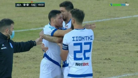Η ΑΕΛ άνοιξε το σκορ κερδίζοντας ανέλπιστα ένα πέναλτι, καθώς και την αποβολή του Γκαρντάφσκι, και τον Μαυριά να μην απαρνείται το «δώρο» του διαιτητή Παπαπέτρου. O Γερμανός παίκτης του ΠΑΣ ήταν μέσα στην απορία και δικαίως.