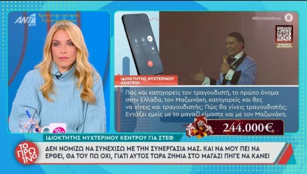 Ο επιχειρηματίας, ο οποίος συνεργάζεται με τον νεαρό τραγουδιστή, Στέφανο Παπαδόπουλο, ο οποίος κατήγγειλε τον Γιώργο Μαζωνάκη για ασέλγεια εις βάρος του, μίλησε στον ΑΝΤ1 για τα όσα ξέρει ή έμαθε για την ιστορία, παίρνοντας ξεκάθαρα το μέρος του «Μαζώ», ενώ τόνισε ότι δεν θα συνεχίσει τη συνεργασία του με τον Παπαδόπουλο «γιατί κάνει κακό στο μαγαζί».