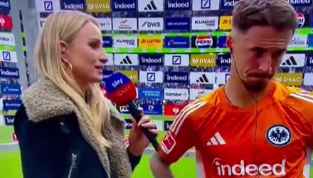 Η Άιντραχτ Φρανκφούρτης κέρδισε με 4-1 τη Βέρντερ Βρέμης στην έδρα της στην πρώτη αγωνιστική της Bundesliga για τη σεζόν 2025/26. Αμέσως μετά τη λήξη της αναμέτρησης ο αρχηγός της ηττημένης ομάδας, Μάρκο Φρίντελ αντάλλαξε τη φανέλα του με αυτή του τερματοφύλακα των γηπεδούχων, Μίκαελ Ζέτερερ κλήθηκε να κάνει τις καθιερωμένες δηλώσεις στον τηλεοπτικό φακό. Όμως προκλήθηκε μια αστεία και ασυνήθιστη στιγμή, όταν η δημοσιογράφος μπερδεύτηκε από την εμφάνιση του παίκτη και τον ρώτησε αν είναι χαρούμενος από τη σημερινή νίκη.