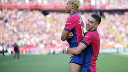 Τα γκολ για τους Καταλανούς σημείωσαν οι Γκαρθία (19΄), Γιαμάλ (32΄) και Ραφίνια (34΄, 45΄).
