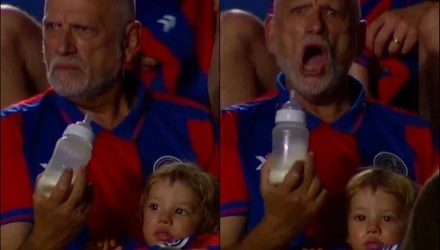 Όσο αυτός παρακολουθούσε το παιχνίδι, ο μικρός φίλος της ομάδας δεν απολάμβανε το γεύμα του και δυσανασχετούσε. Λίγα δευτερόλεπτα αργότερα, ήρθε το 1-0 για την Σαν Λορέντσο (μόλις στο 2') προκαλώντας τον έξαλλο πανηγυρισμό του ηλικιωμένου φίλου της ομάδας και ολοκληρώνοντας με... ιδανικό τρόπο το πλάνο από την κερκίδα.