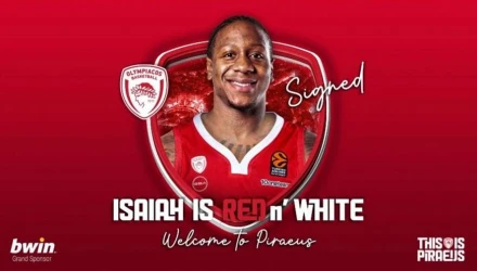 «Η ΚΑΕ Ολυμπιακός ανακοινώνει την απόκτηση του Αϊζάια Κάνααν. Ο Αμερικανός γκαρντ υπέγραψε συμβόλαιο διετούς διάρκειας.