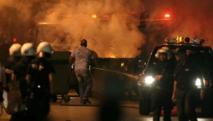 Ακολούθως , τα επεισόδια μεταφέρθηκαν εκτός ΕΑΚ μεταξύ των οπαδών του Ολυμπιακού Βόλου και των ΜΑΤ με πετροπόλεμο και ρίψη κροτίδων. Μάλιστα, ο δήμαρχος, Αχιλλέας Μπέος τα έβαλε με την Αστυνομία και την κατηγορούσε για την ένταση που προκλήθηκε.