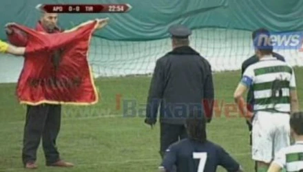 Ακόμα ένα επεισόδιο στη κόντρα μεταξύ της Σερβίας και της Αλβανίας. Αυτή τη φορά στην αναμέτρηση της Απολόνια με τα Τίρανα για το αλβανικό πρωτάθλημα. Αλβανός οπαδός εισέβαλε στον αγωνιστικό χώρο κρατώντας σημαία της Αλβανίας, επιδεικνύοντάς την στους παίκτες των δύο ομάδων.