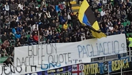 Στη μία πλευρά του γηπέδου το πανό έγραφε «Μπουφόν δώσε μας συμβουλές…Κλόουν» ενώ στην άλλη πλευρά το μήνυμα ήταν: «Μπουφόν, δεν εκτιμάς, αλλά κανείς δεν είναι άψογος…Κοίτα, κοίτα, κοίτα πόσο… νοιαζόμαστε».