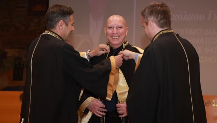Η τελετή αναγόρευσής του σε επίτιμο διδάκτορα του Τμήματος Επιστήμης Φυσικής Αγωγής και Αθλητισμού του ΑΠΘ, πραγματοποιήθηκε το απόγευμα της Τρίτης (2/5) στην αίθουσα τελετών του Αριστότελειου Πανεπιστημίου Θεσσαλονίκης.