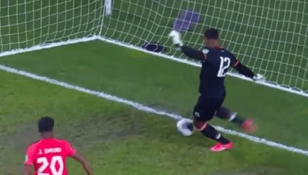 One of the worst concessions in goalkeeping history, and #CanMNT take a 1-0 lead over Haiti