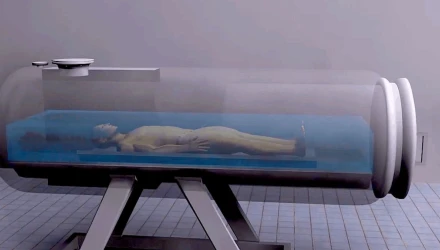 Επειδή το δοχείο βρίσκεται υπό πίεση, το νερό δεν βράζει αλλά παραμένει σε υγρή μορφή. Μέσα σε λίγες ώρες, η διαδικασία διασπά σταδιακά τους μαλακούς ιστούς του σώματος.