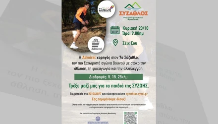 Την Κυριακή 23 Οκτωβρίου και ώρα 9:00 π.μ. θα πραγματοποιηθεί στο δάσος του Σέιχ Σου ο 7ος ‘’ΣΥΖΑΘΛΟΣ’’ 2022 που διοργανώνει η Συζωή- Σύλλογος Γονέων, κηδεμόνων & Φίλων Ατόμων με διαταραχές όρασης, σε συνεργασία με την Περιφέρεια Κεντρικής Μακεδονίας.
