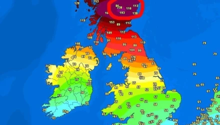 Ασύλληπτες ριπές ανέμων της τάξεως των 238 km/h καταγράφηκαν στις κορυφές της Σκωτίας τις τελευταίες ώρες. ενώ και χαμηλότερα ο άνεμος ξεπέρασε τα 100 χλμ/ώρα στα ορεινά καθώς και στις παράκτιες περιοχές.