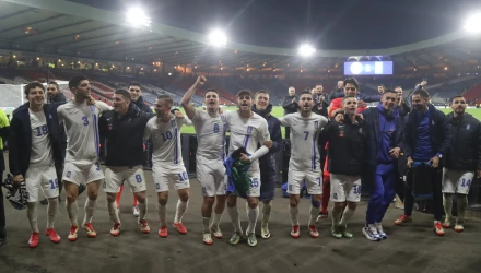 Η Εθνική ομάδα μετά από εντυπωσιακή εμφάνιση έκανε τη μεγάλη ανατροπή στο «Χάμπντεν Παρκ» της Γλασκώβης επικρατώντας με 3-0 των Σκωτσέζων και πανηγύρισε την άνοδο στη League Α του Nations League.