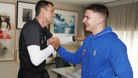 Στα μέσα κοινωνικής δικτύωσης της εθνικής ομάδας μου σκέφτηκα φωτογραφίες αλλά και βίντεο από την άφιξη των ποδοσφαιριστών τους οποίους υποδέχτηκαν οι Γκουστάβο Πογέτ και Φύσας Κωνσταντινίδης.