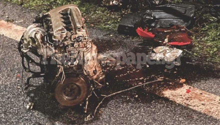 Οι αξιωματικοί της Πυροσβεστικής τονίζουν ότι δεν έχουν ξαναδεί τόσο φρικτό τροχαίο δυστύχημα. Η μηχανή έχει αποκοπεί από το υπόλοιπο αυτοκίνητο, τα υπολείμματα του οποίου είχαν συρρικνωθεί σαν φυσαρμόνικα.