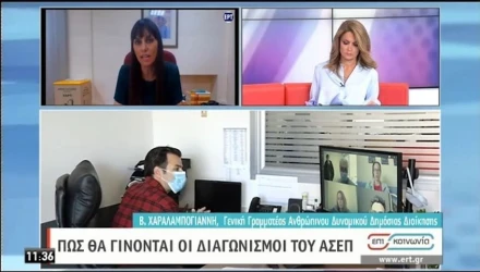 Για την πρόσληψη μόνιμου προσωπικού, καθιερώνεται πανελλήνιος γραπτός διαγωνισμός μία φορά το χρόνο, επιταχύνονται οι διαδικασίες με την αξιοποίηση ψηφιακών δυνατοτήτων και γίνεται προσπάθεια να καθιερωθεί ένα πιο αξιοκρατικό σύστημα, ώστε κάθε θέση στο δημόσιο να καλύπτεται από τον κατάλληλο άνθρωπο. Οι πρώτες εξετάσεις με το νέο σύστημα θα γίνουν το 2022. Η ΓΓ Ανθρωπίνου Δυναμικού Δημόσιας Διοίκησης κ. Χαραλαμπόγιαννη εξηγεί...