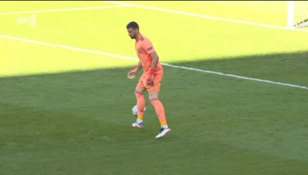 Ο Πέδρι έκανε γύρισμα προς τα πίσω, όμως ο Σιμόν δεν υπολόγισε σωστά την μπάλα και μοιραία κατέληξε στα δίχτυα του.