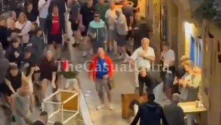 Μια γροθιά φαίνεται πως προκάλεσε την πτώση ενός οπαδού, με αποτέλεσμα να ξεσπάσει γενικευμένη σύρραξη.