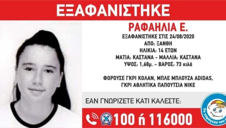 «Στις 24/8/2020, στις 15:50, εξαφανίστηκε από το σπίτι της στην περιοχή της Ξάνθης, η Ραφαηλία Ε., 14 ετών.
