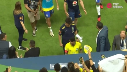 Αυτός όμως που πλήρωσε τελικά τα νεύρα των Βραζιλιάνων ήταν ο Νεϊμάρ, ο οποίος κατά την αποχώρησή του από το χορτάρι δέχθηκε ένα κουτί με ποπ κορν στο κεφάλι, πετυχαίνοντας τον άσο της Αλ Χιλάλ στο κεφάλι. Όπως ήταν λογικό, και ολίγον το δικαιολογημένο, ο Νεϊμάρ αντέδρασε και του απάντησε με κάποια «γαλλικά», πριν τον απομακρύνουν από το σημείο.
