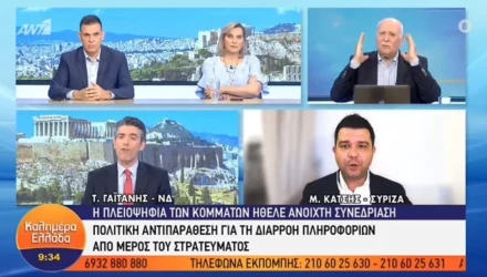 «Συντομεύστε όμως κ. Κάτση, να χαρείτε! Αν μιλάτε 15 λεπτά εσείς, 15 λεπτά ο κ. Γαϊτάνης, εμείς θέλουμε 15 ώρες εκπομπής!» είπε αρχικά ο Γιώργος Παπαδάκης.