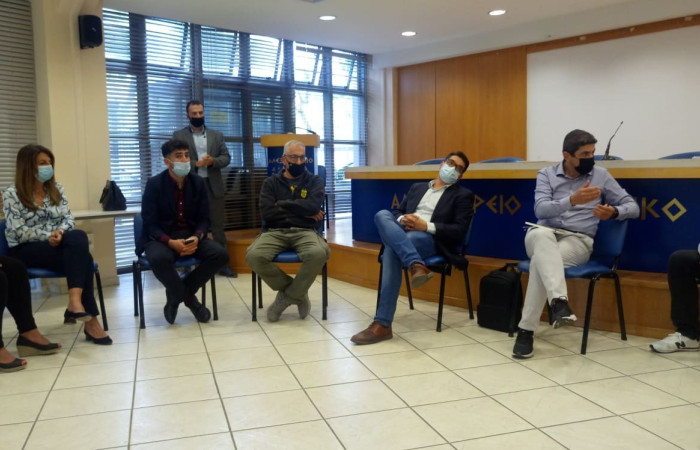 Τέλος, σημείωσε ότι πρέπει να υπάρχει καλή συνεργασία ανάμεσα στις τρεις ομάδες της πόλης. Μαζί του βρίσκονται και οι κ.κ. Κουβέλας, Ράπτη, Πετρόγλου και το διοικητικό συμβούλιο.