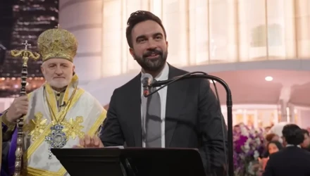 Μια ιδιαίτερα όμορφη και γιορτινή στιγμή εκτυλίχθηκε στον Ιερό Ναό Αγίου Νικολάου, στο σημείο-ορόσημο του Παγκόσμιου Κέντρου Εμπορίου, όπου ο δήμαρχος της Νέας Υόρκης, Ζοχράν Μαμντάνι, έστειλε τις ευχές του για την Ανάσταση σε... άπταιστα ελληνικά!