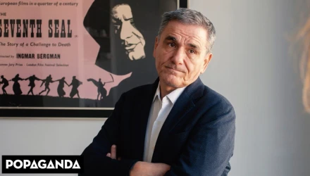 Με εκπλήσσει όταν λέει πως δεν έχει δει την ταινία «Φτηνά Τσιγάρα», ενώ παρακολούθησε την διασκευή τους σε μιούζικαλ. Ωστόσο, σχεδόν σοκάρομαι όταν αποκαλύπτει ότι δεν έχει παρακολουθήσει την «Ψυχή Βαθιά» του Παντελή Βούλγαρη, το φιλμ που είχε προκαλέσει νέο Εμφύλιο στη δημόσια σφαίρα μόλις έκανε πρεμιέρα κι όπου υπήρχε και κεντρικός ρόλος του Ταξίαρχου Τσακαλώτου, αδελφού του παππού του. Θα αναζητήσει και τα δυο φιλμ σε μεγάλη πλατφόρμα, με καθησυχάζει περισσότερο, είναι ξεκάθαρο, ενώ το μυαλό του τρέχει αλλού. Έχουμε εισέλθει στην προεκλογική περίοδο και η πολιτική μάχη είναι στα «χαρακώματα». Η επικαιρότητα στο μεταξύ καλπάζει. Θα την προλάβουμε, ανταλλάσσοντας γραπτώς ερωταποκρίσεις; Το ερώτημα αιωρείται, όπως οι σκοτεινές φιγούρες της «‘Εβδομης Σφραγίδας» στέκονταν πίσω από τα κεφάλια μας στο πολιτικό γραφείο του.