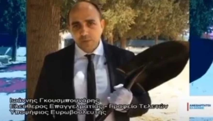 Ο λόγος για τον Ιωάννη Γκουσμπουνάρη που είναι υποψήφιος με τους Ανεξάρτητους Έλληνες και στο σποτ που επιμελήθηκε «απειλεί» να να θάψει την Ευρώπη της Μέρκελ και του Γιούνκερ.