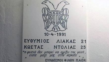 H ΠΑΕ ΠΑΟΚ σε συνεργασία με τους Συνδέσμους θέλοντας να τιμήσει τη μνήμη τους, έχει βάλει μια πλακέτα με τα ονόματα τους στην είσοδο των γραφείων στην Τούμπα.