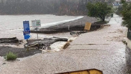Δρόμοι έχουν γίνει ποτάμια και κόπηκαν στα δύο, η άσφαλτος έχει καταλήξει στη θάλασσα, ενώ μεγάλες είναι οι ζημιές και στην περιοχή του Μαντουδίου.