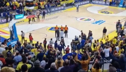 Πιο συγκεκριμένα με την ολοκλήρωση του ημιχρόνου και τον Ολυμπιακό να προηγείται με 30-51, οπαδοί της Φενέρ έκλεισαν την δίοδο των διαιτητών προς τα αποδυτήρια, με τους Ρόμπερτ Λοτερμόζερ, Τζόσεφ Μπισάνγκ και Κάρλος Κόρτες να μένουν στη θέση τους μέχρι να κατευνάσουν τα πνεύματα.