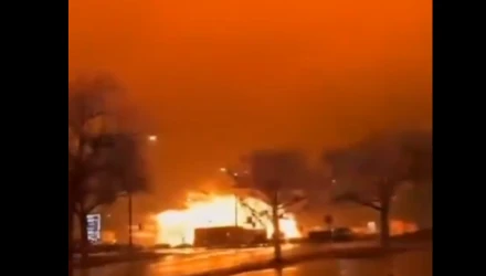 Από τη συντριβή ξέσπασε φωτιά σε πολλά κτίρια και οχήματα γύρω από το Roosevelt Mall, ένα εμπορικό κέντρο στη βορειοανατολική Φιλαδέλφεια.