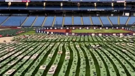 Μέσα σε λίγες ώρες, όπως αποτυπώθηκε σε βίντεο στα social media, ο αγωνιστικός χώρος του σταδίου γέμισε με ράντζα και είδη πρώτων βοηθειών, για τους πληγέντες του «Milton».