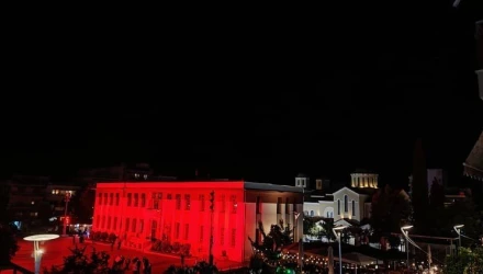 Αυτή την ώρα το Δημαρχείο έχει φωταγωγηθεί με κόκκινο χρώμα, ενώ μπροστά χόρεψαν μέλη της Ένωσης Ποντίων Καλαμαριάς, ενώ με κεριά σχηματίστηκε το G, όπως μπορείτε να δείτε στις αποκλειστικές φωτογραφίες και βίντεο του Metrosport.gr.