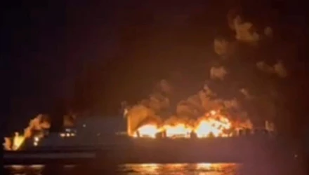 Ολοσχερώς καίγεται το επιβατηγό-οχηματαγωγό πλοίο Euroferry Olympia του ομίλου Grimaldi, αλλά οι 237 επιβάτες και τα 51 άτομα πλήρωμα κατάφεραν να το εγκαταλείψουν εγκαίρως.
