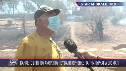 Έξι χρόνια μετά τη φονική πυρκαγιά στο Μάτι, ο άνθρωπος που κατηγορήθηκε ως υπεύθυνος για την τραγωδία επειδή έβαλε φωτιά σε ξερόχορτα της αυλής του, είδε το δικό του σπίτι να τυλίγεται στις φλόγες.