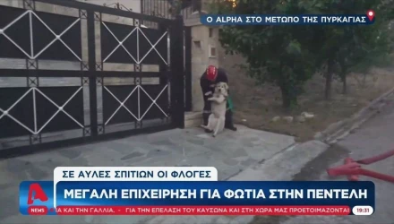 Την ώρα που η φωτιά στην Πεντέλη άρχισε να παίρνει μεγάλες διαστάσεις, στην προσπάθεια κατάσβεσης συμμετείχαν και εθελοντές, με έναν από αυτούς να καταφέρνει να σώσει έναν μεγαλόσωμο σκύλο, που είχε μείνει στην αυλή ενός σπιτιού.
