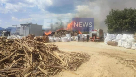 Φωτιά ξέσπασε σε εργοστάσιο ξυλείας που βρίσκεται σε κοντινή απόσταση με το Νέο Σούλι του Δήμου Εμμανουήλ Παππά Σερρών.