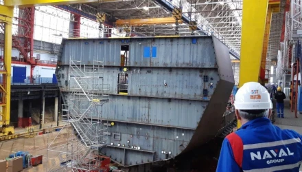 Σημαντική πρόοδος στη ναυπήγηση της πρώτης ελληνικής φρεγάτας FDI «Belharra» κλάσεως «Κίμων» επετεύχθη επτά εβδομάδες μετά την τοποθέτηση του πρώτου μπλοκ της φρεγάτας στη δεξαμενή, στα ναυπηγεία της Naval Group στο Λοριάν της Γαλλίας.