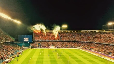 Οι οπαδοί των «αετών» άναψαν πολλές φωτοβολίδες και αρκετές εξ αυτών τις πέταξαν στο κάτω διάζωμα, στο οποίο βρισκόταν φίλοι της Ατλέτικο Μαδρίτης. Μάλιστα, μια εξ αυτών παραλίγο να τραυματίσει δίχρονο παιδάκι.